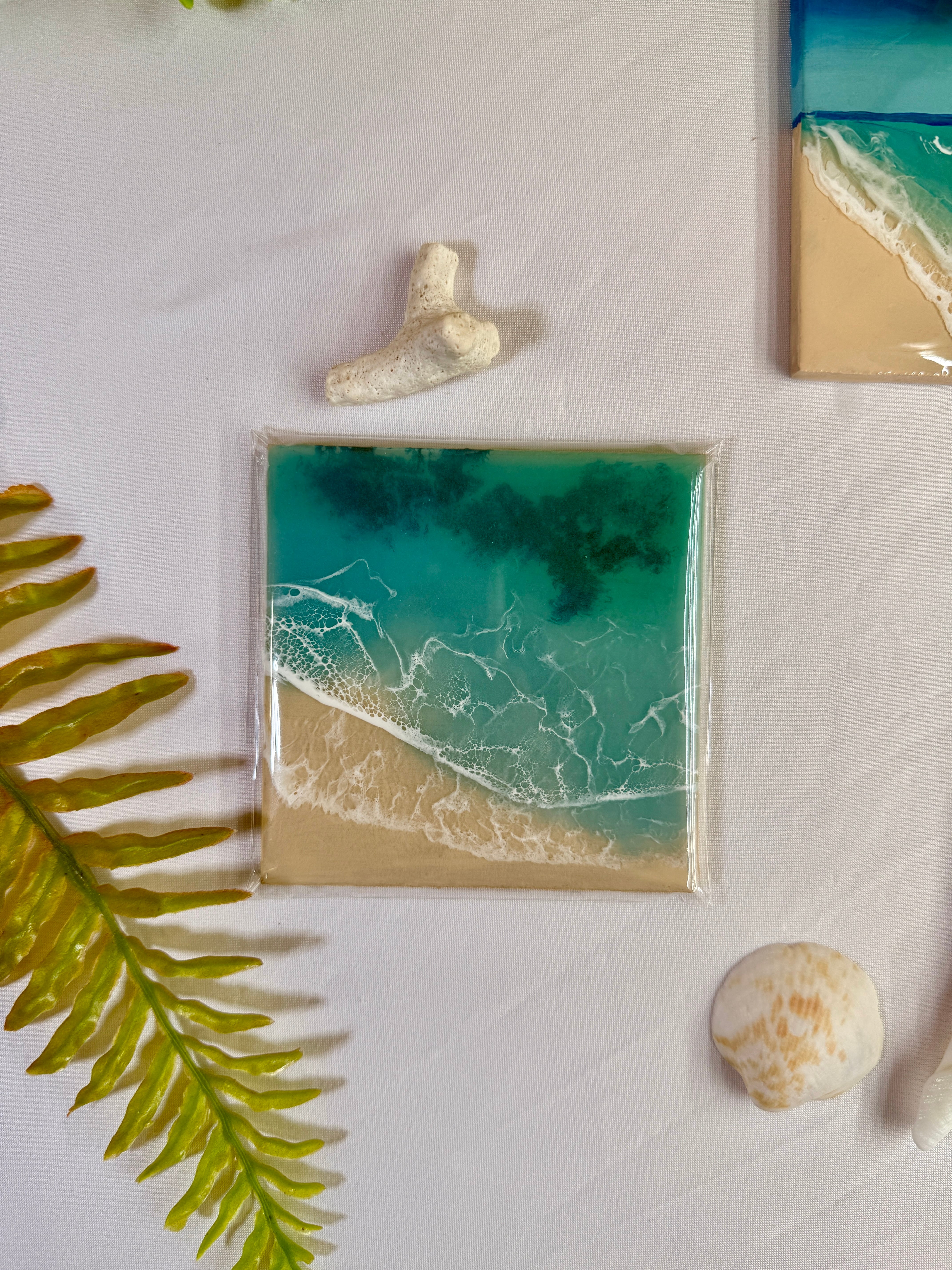 愛知から全国へお届けする、美しい海の輝きを閉じ込めた「海レジンアートコースター」です。