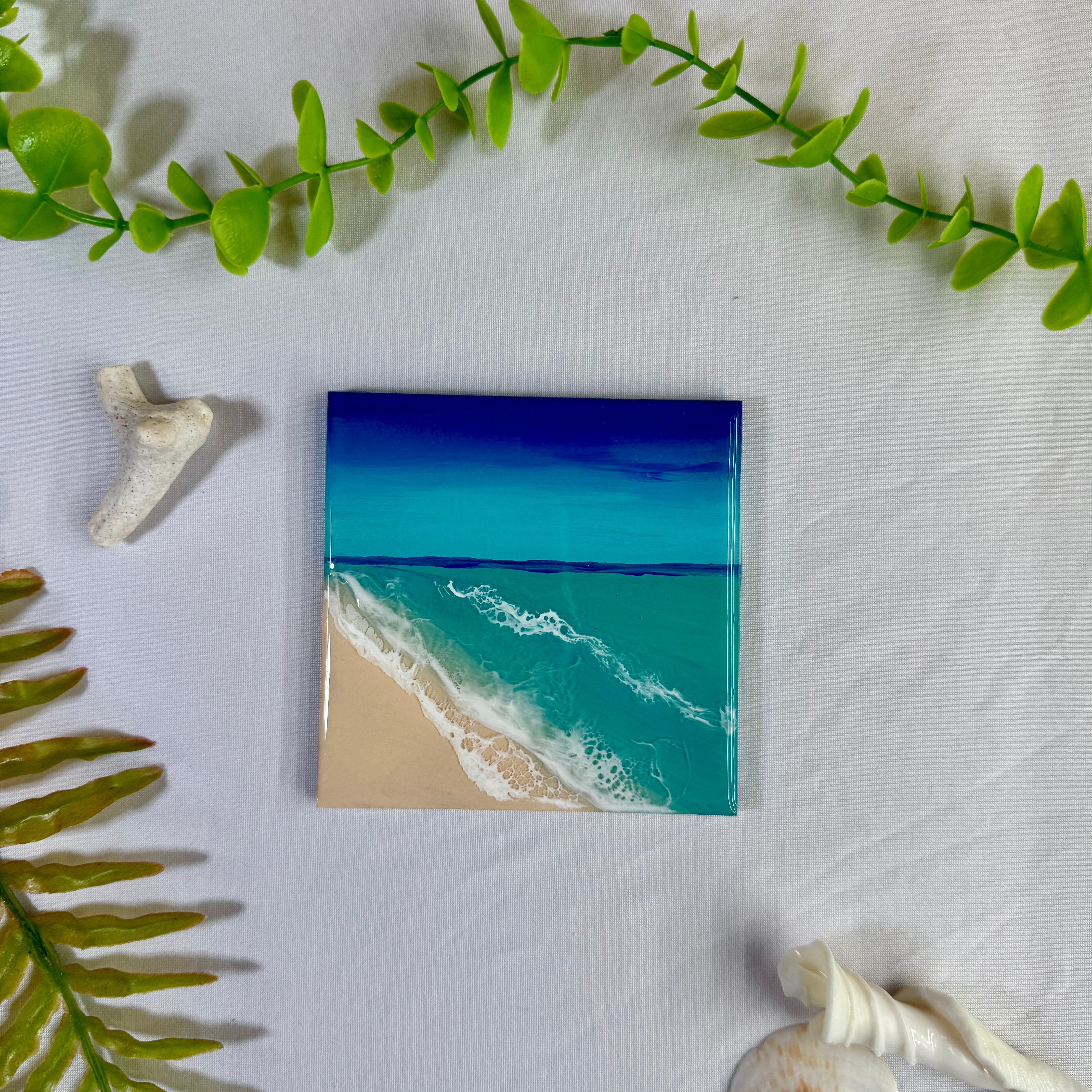 海レジンコースター2層【1枚】 100mm×100mm (絵画)
