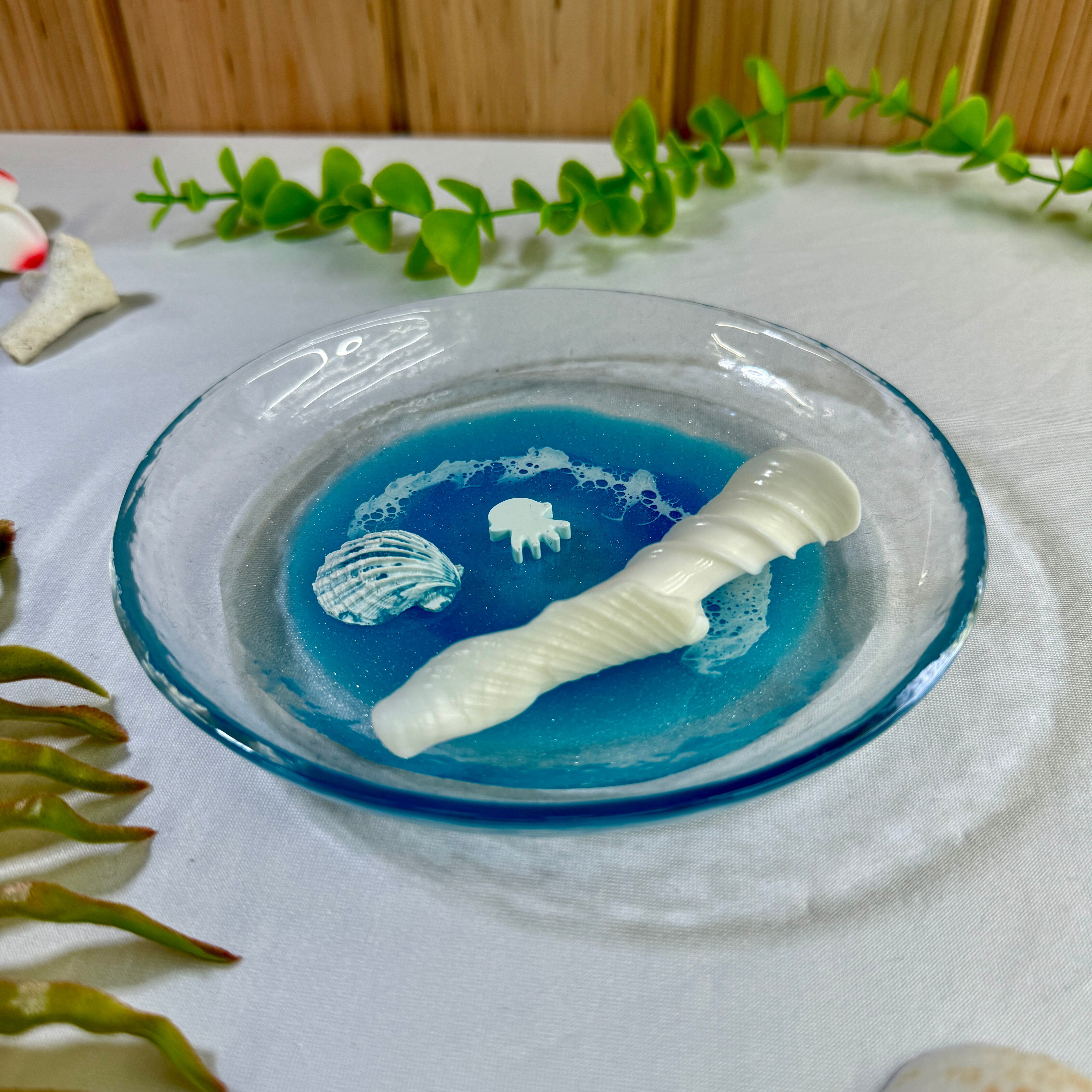 愛知から全国へお届けする、美しい海の輝きを閉じ込めた「海レジンアートガラスプレート」です。