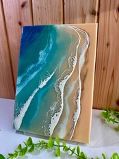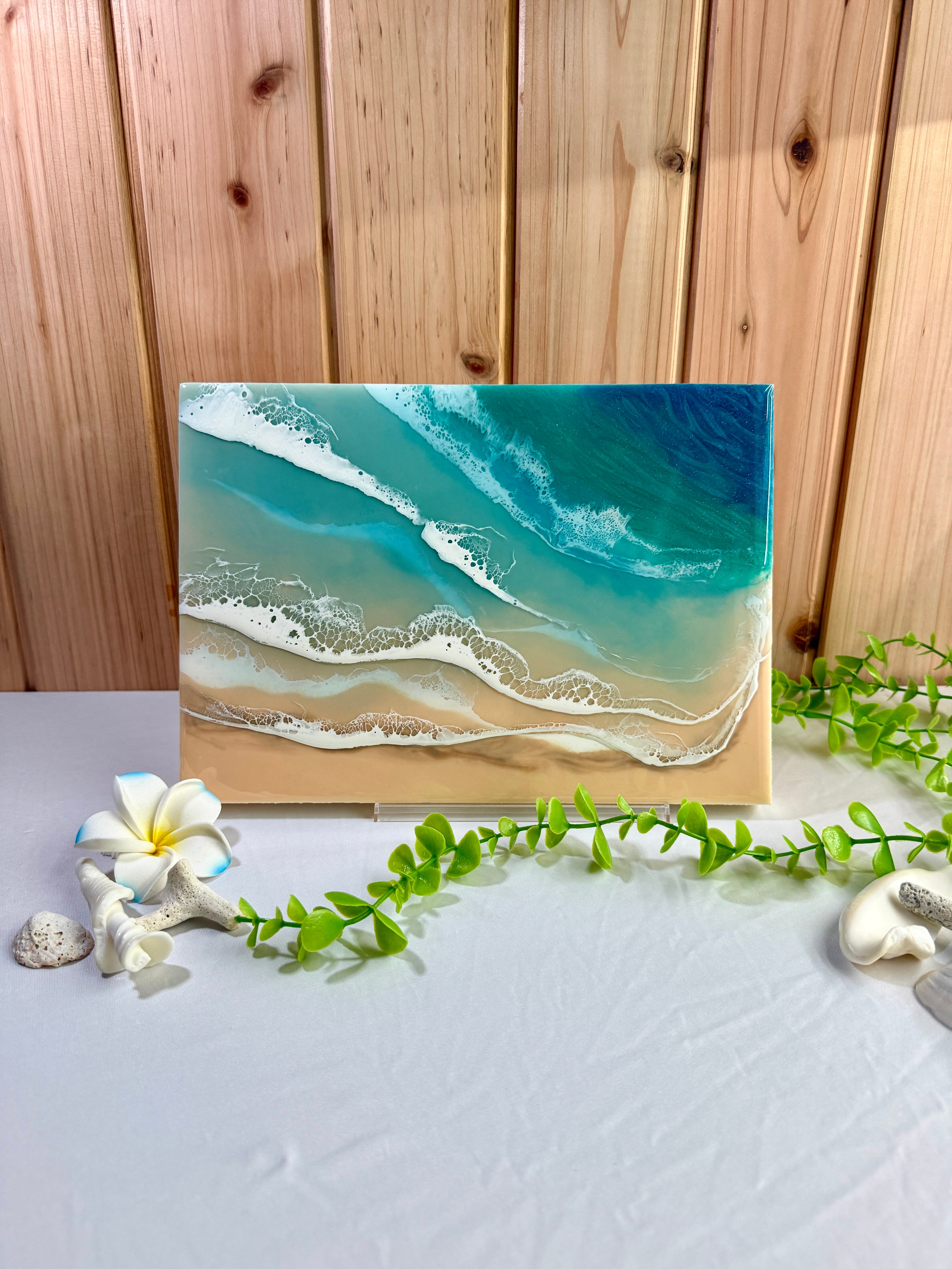 愛知から全国へお届けする、美しい海の輝きを閉じ込めた「海レジンアートパネル」です。