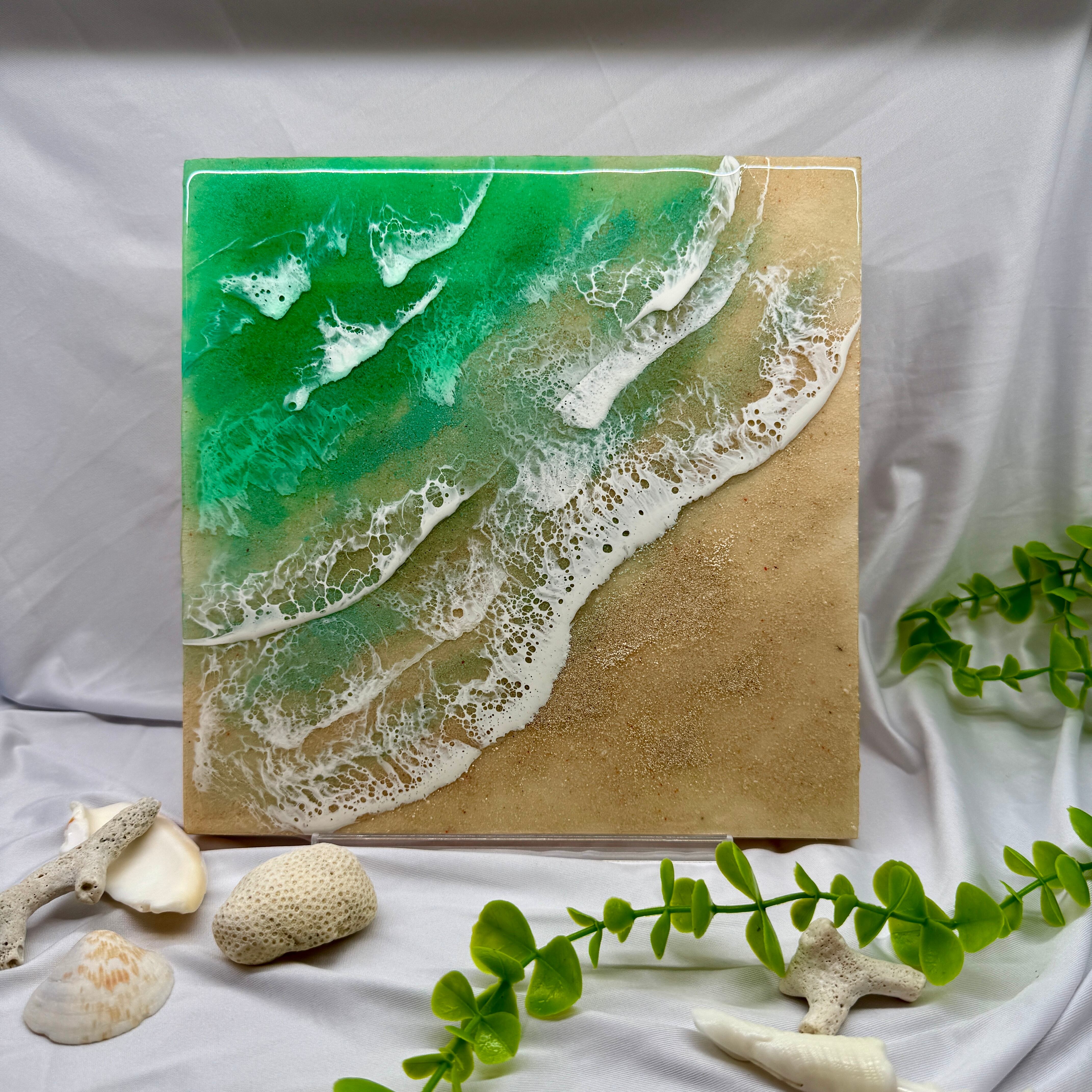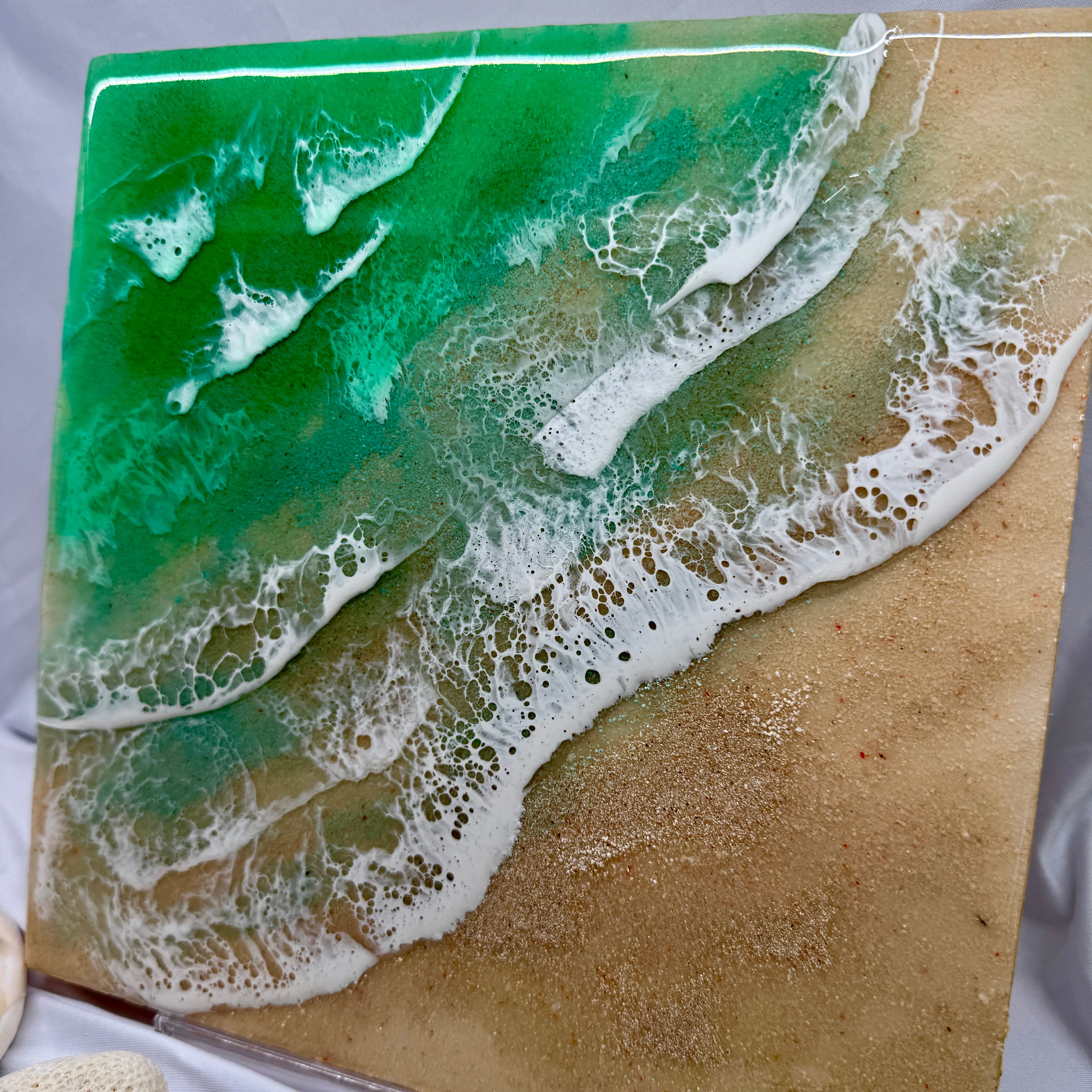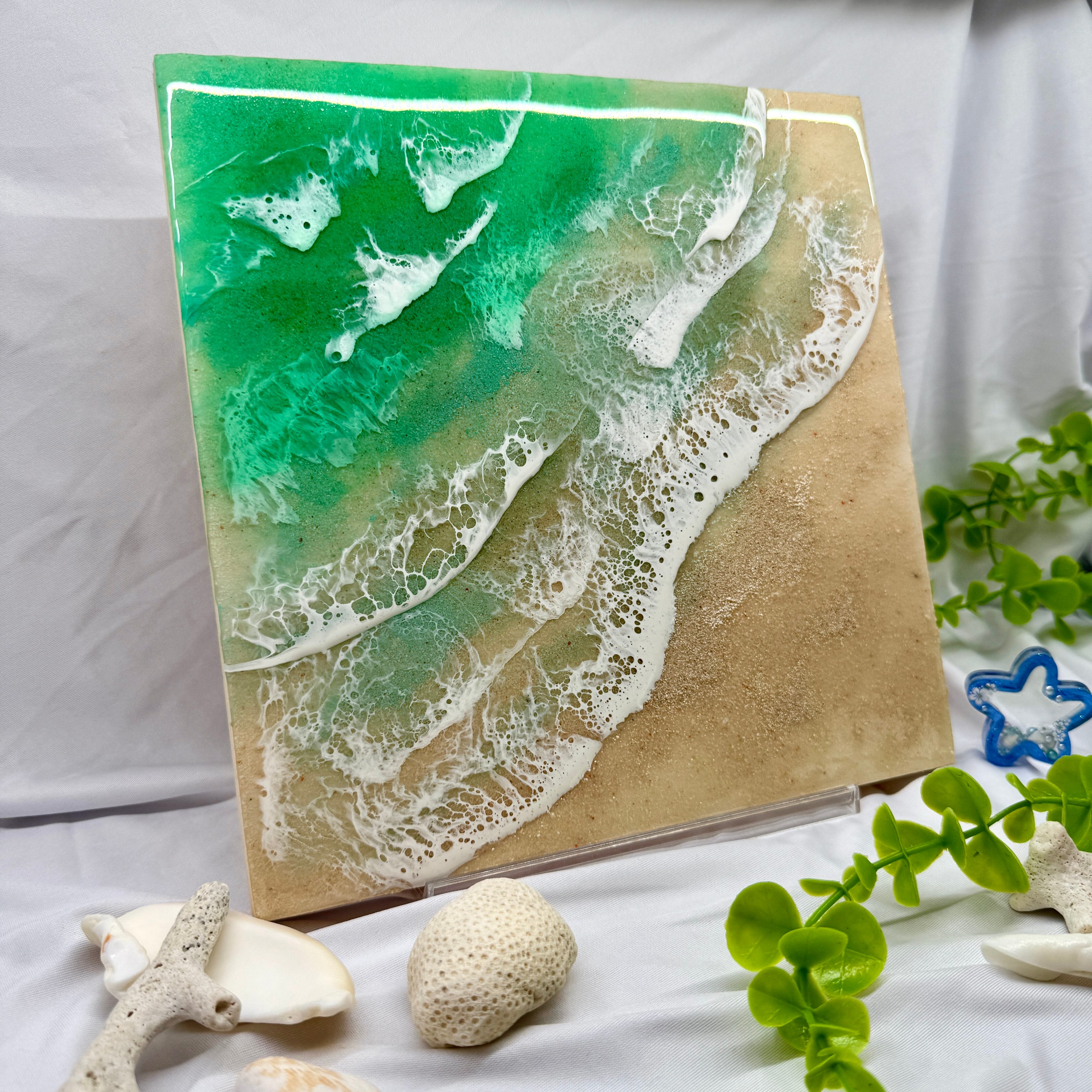 愛知から全国へお届けする、美しい海の輝きを閉じ込めた「海レジンアートパネル」です。