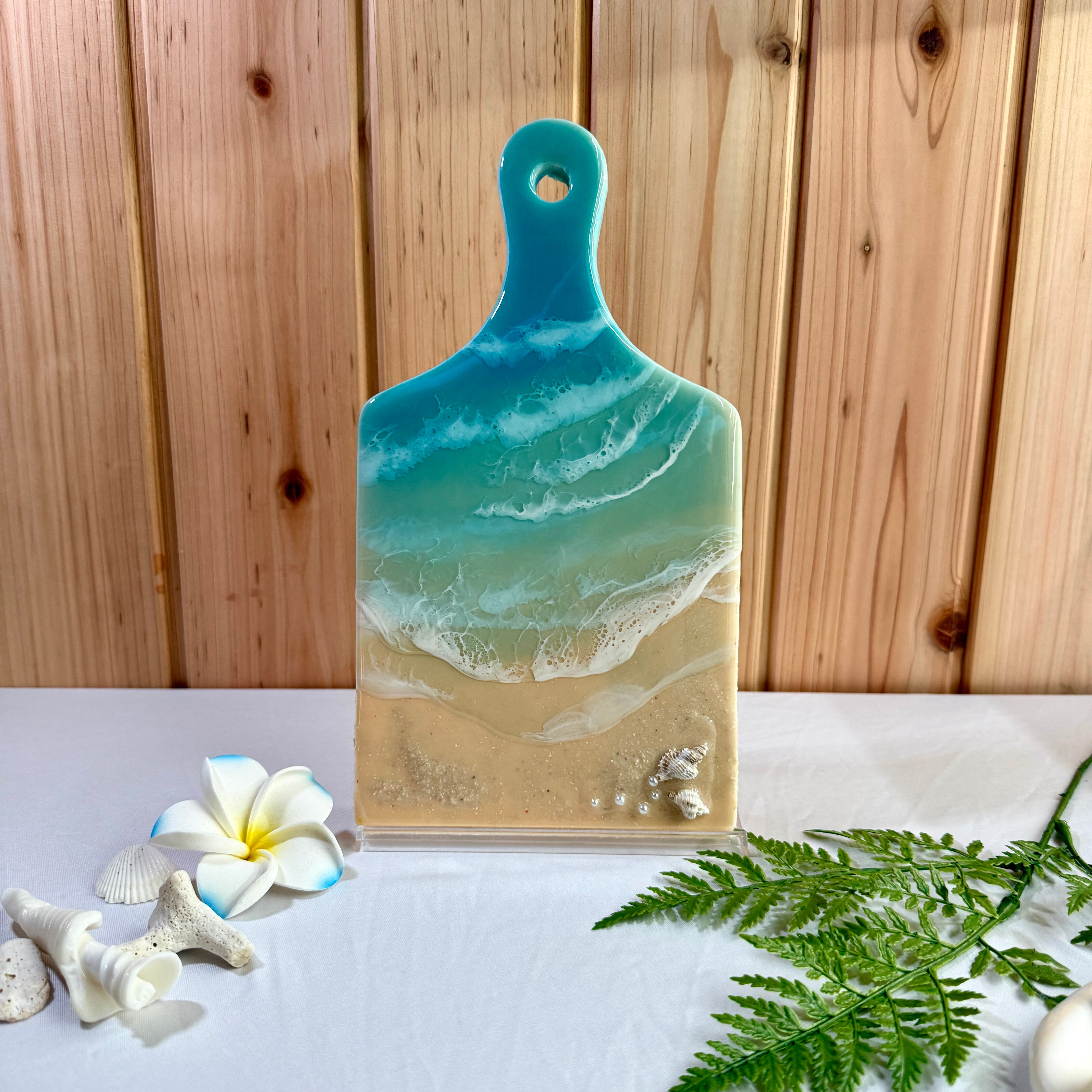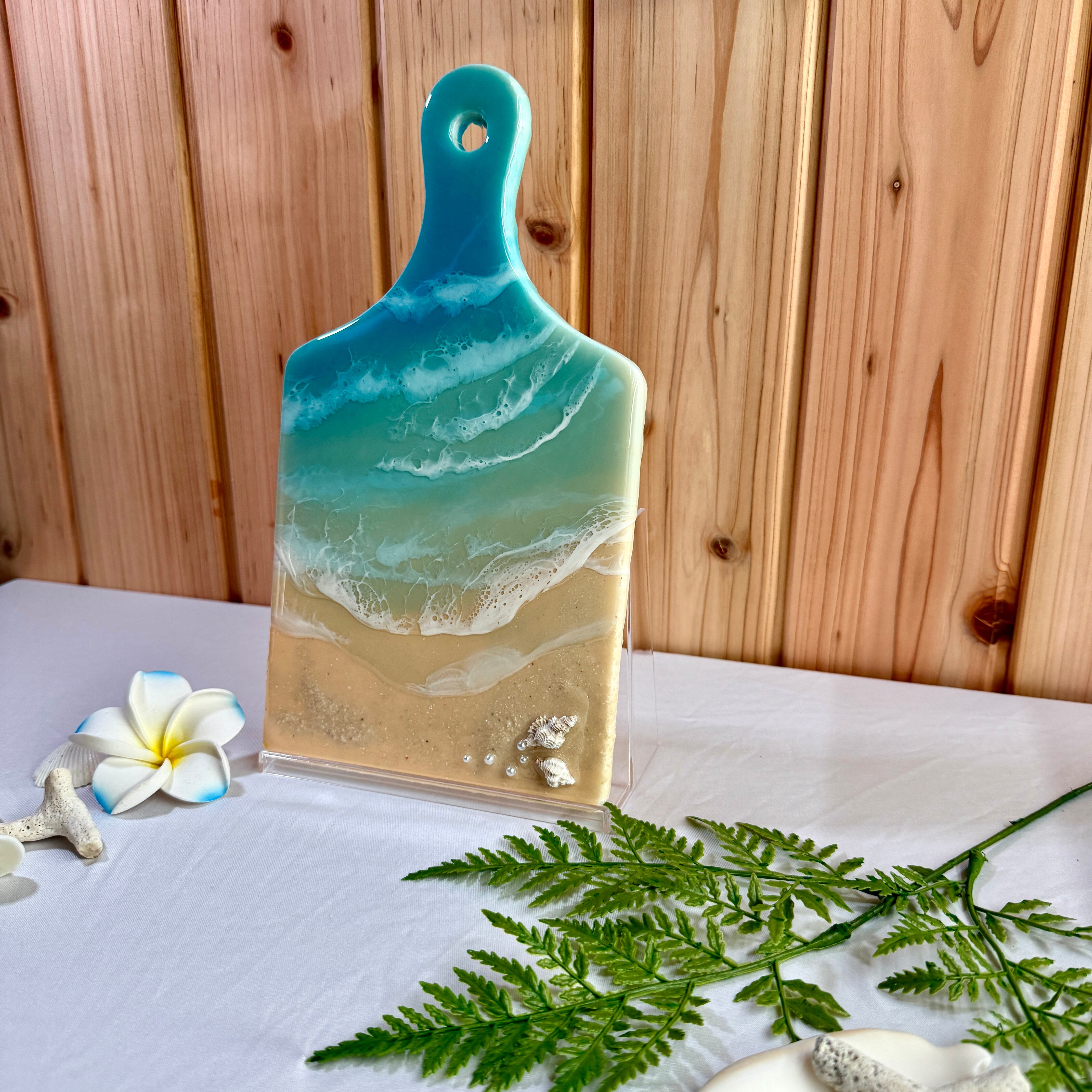 愛知から全国へお届けする、美しい海の輝きを閉じ込めた「海レジンアートのカットボード」です。