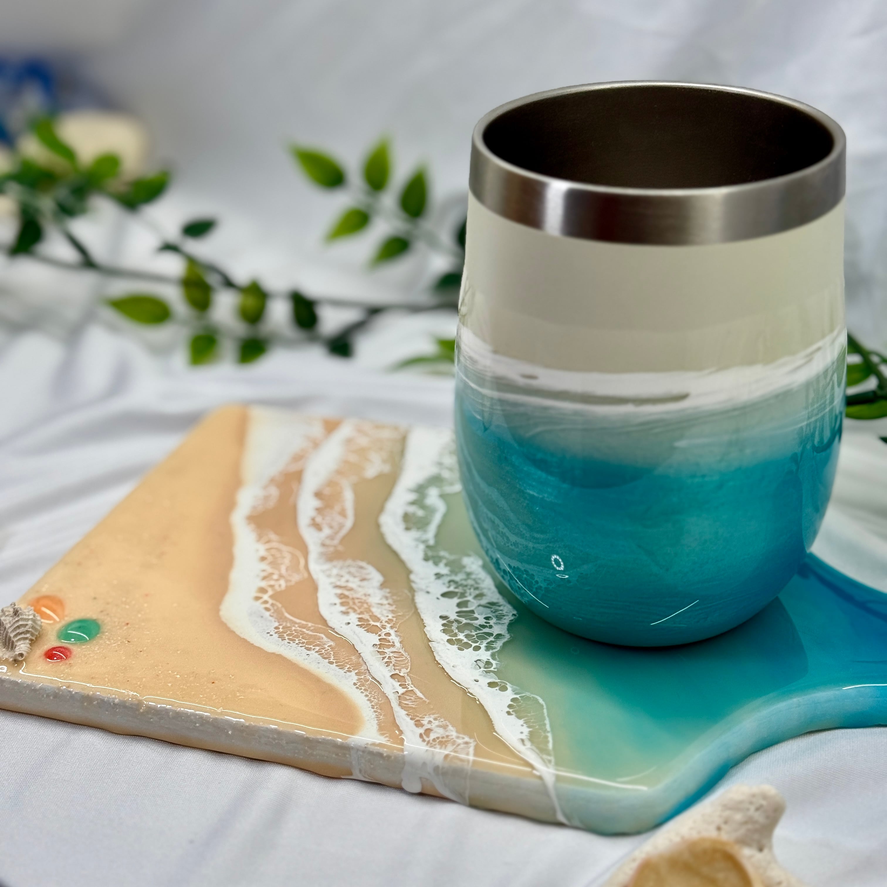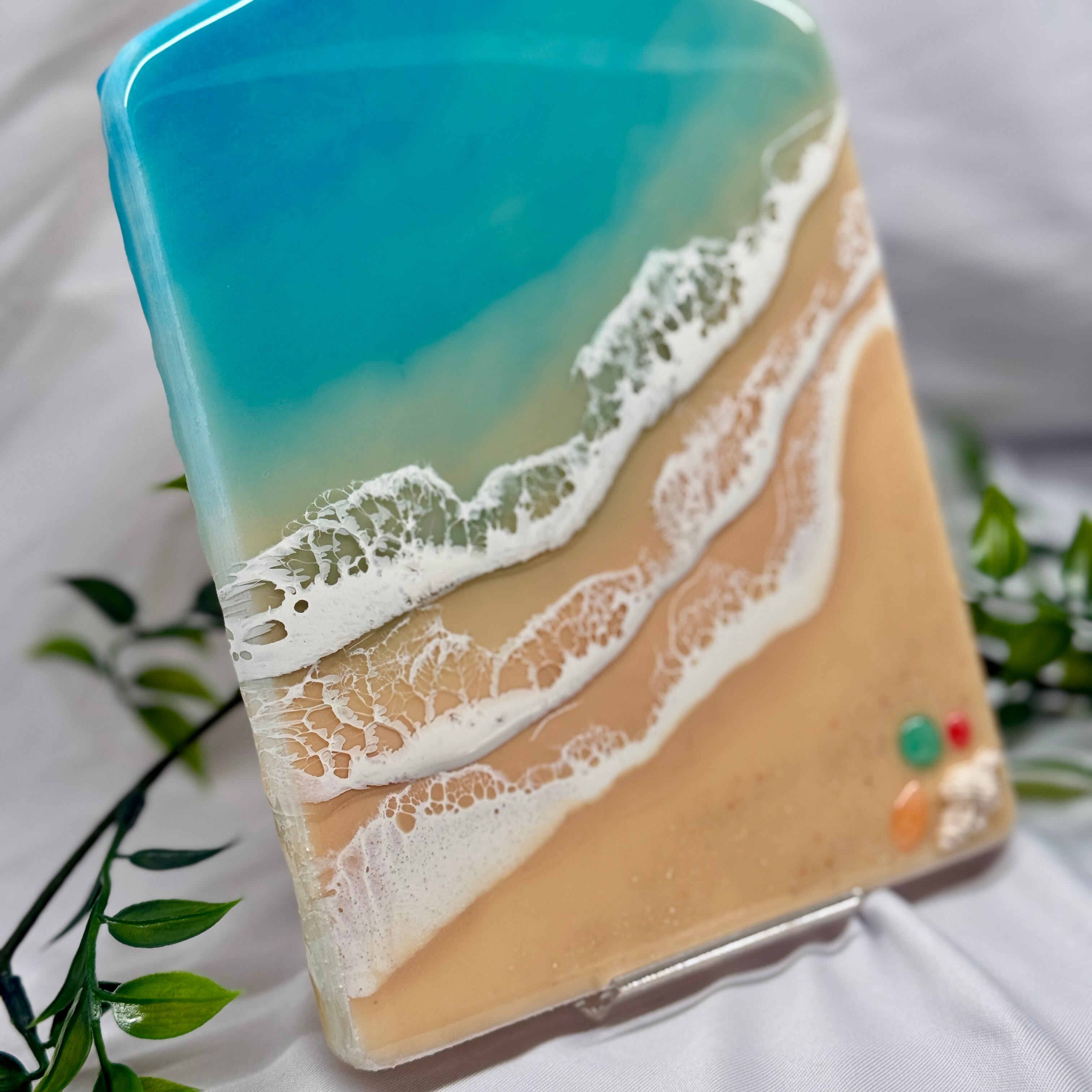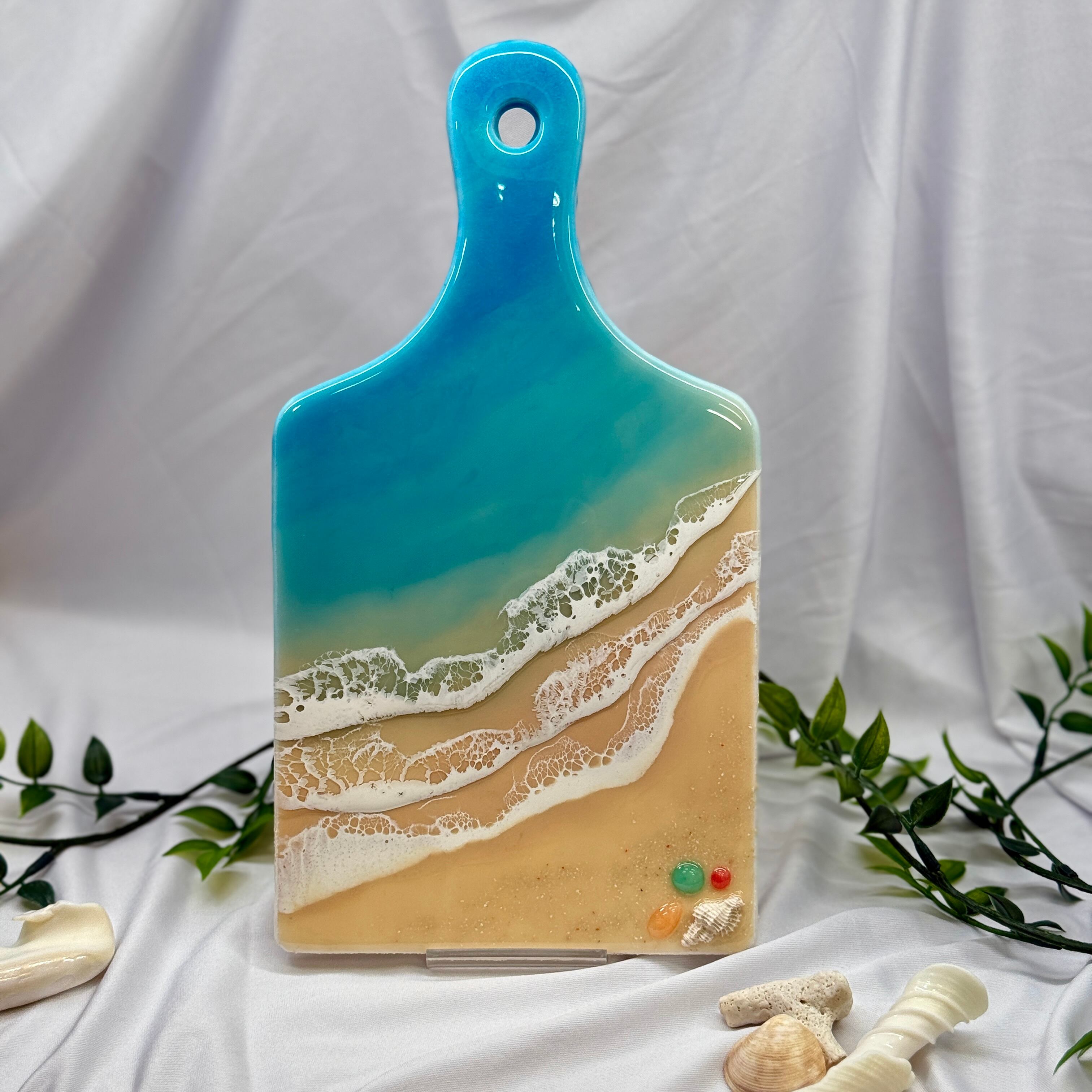 愛知から全国へお届けする、美しい海の輝きを閉じ込めた「海レジンアートのカットボード」です。